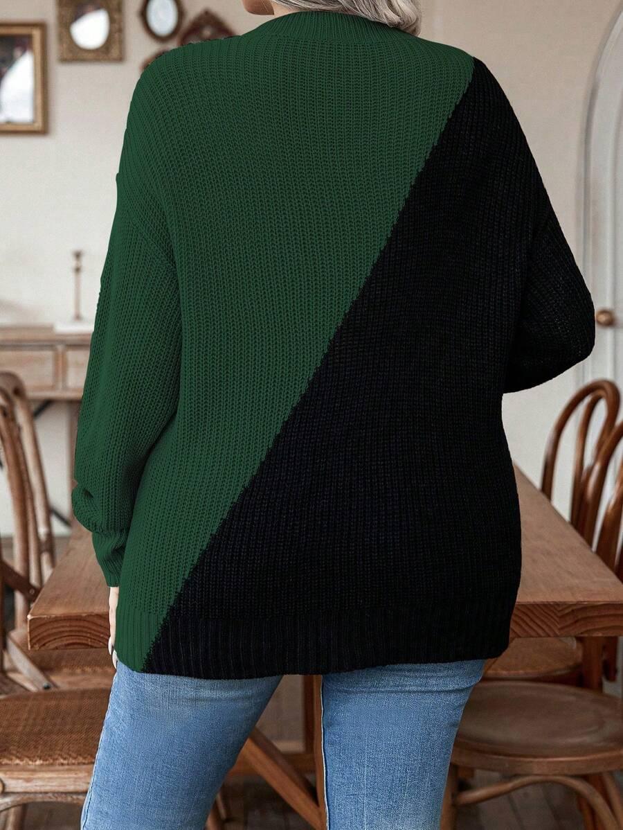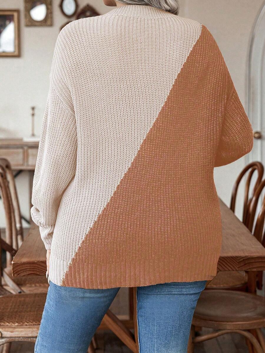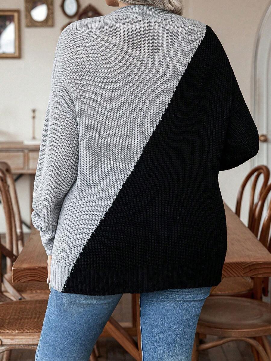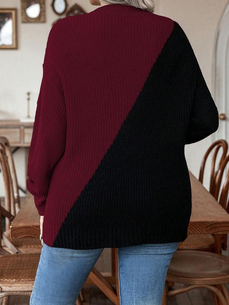 Whether you're headed out or staying in, this Plus Size Colorblock Sweater adds personality and structure to your seasonal wardrobe while keeping comfort front and center.