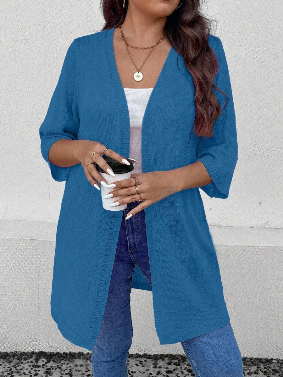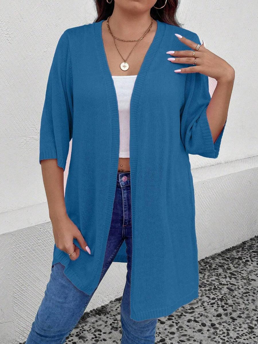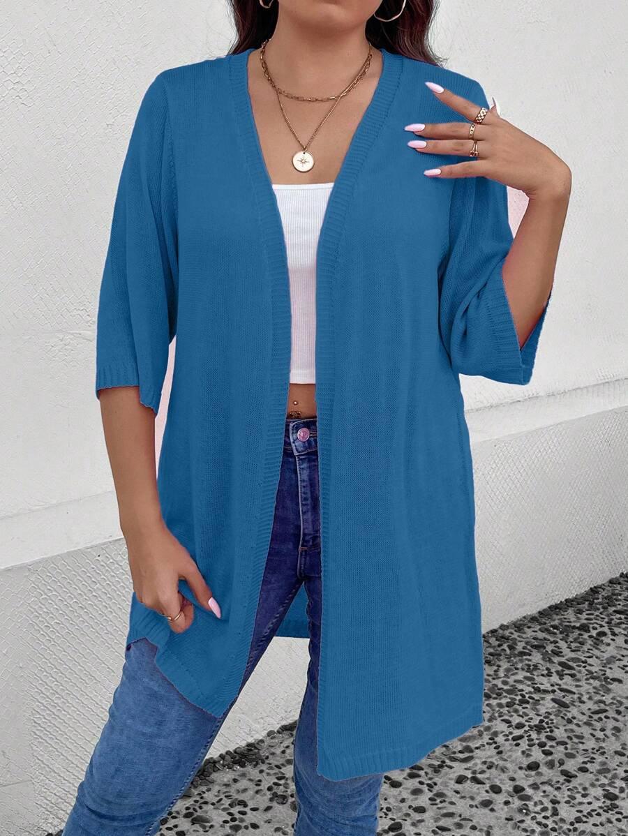 The plus solid open cardigan is a practical layer made for easy styling. It blends form and function without extra details. The solid pattern and loose structure allow it to fit many daily looks. This plus solid open cardigan is made for spring and fall. It works well with casual wear or basic layers. The material offers slight stretch and stays smooth with repeated use.