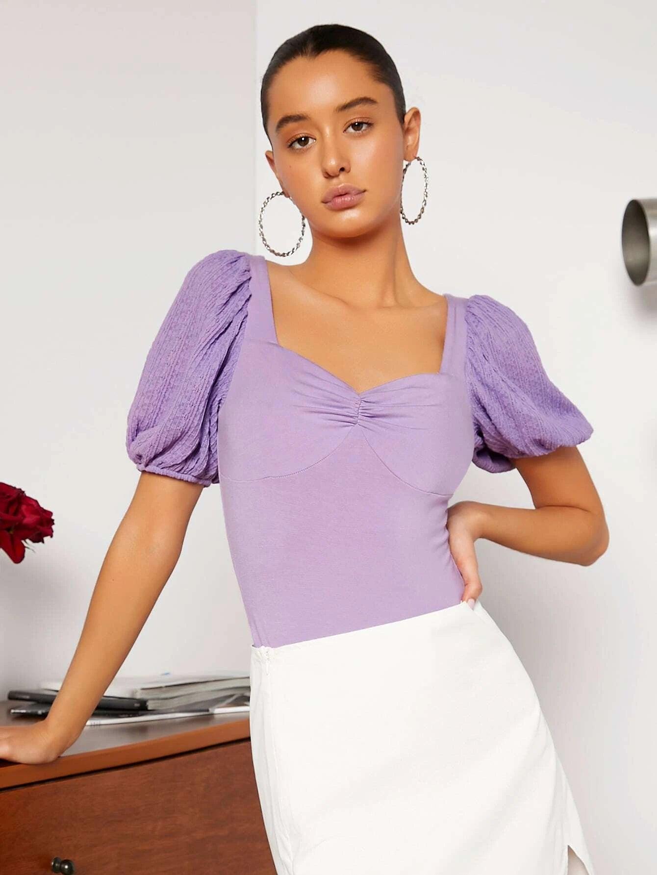 Puff Sleeve Bodysuit is the perfect choice for a casual yet stylish look. Featuring short puff sleeves and ruched details, this bodysuit exudes a feminine and chic vibe. The natural waistline and slim fit design hug your curves in all the right places, while the medium-stretch fabric ensures a comfortable and flattering fit.
