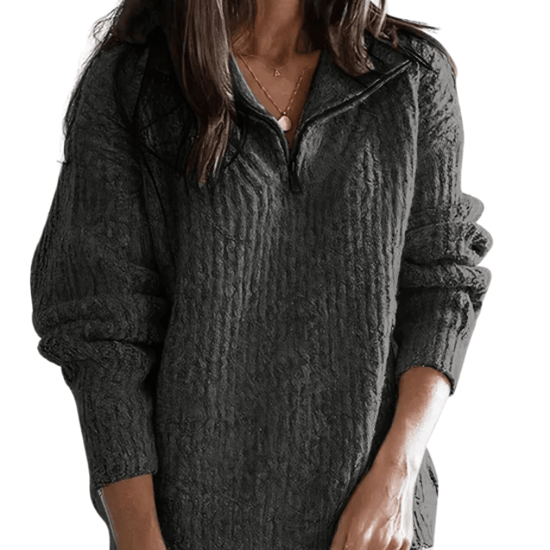 The quarter zip knit sweater is a perfect balance of everyday comfort and timeless style. With its soft knit fabric, functional zip neckline, and relaxed fit, it adapts easily to both home wear and outdoor outings. Its horizontal stripe sweater design brings texture and visual interest without overpowering your outfit.