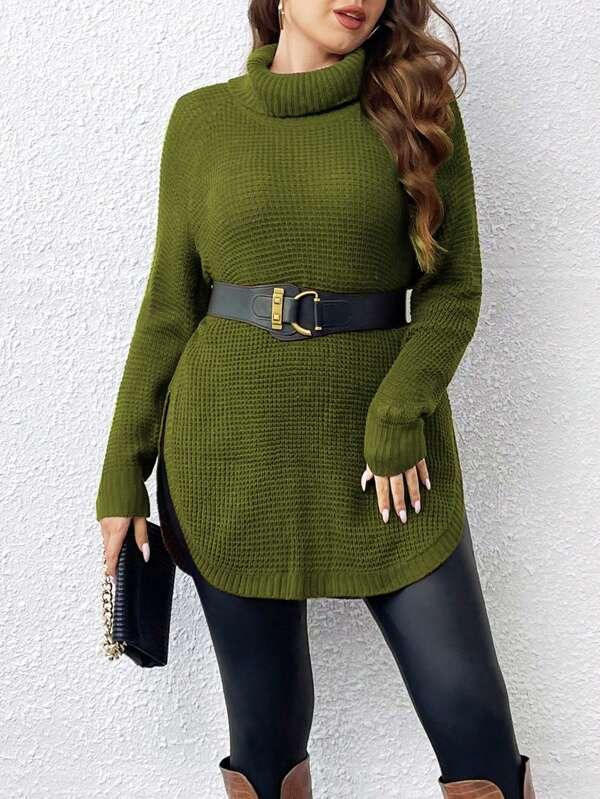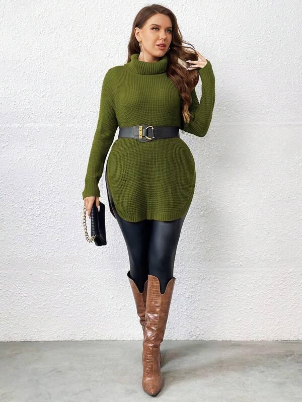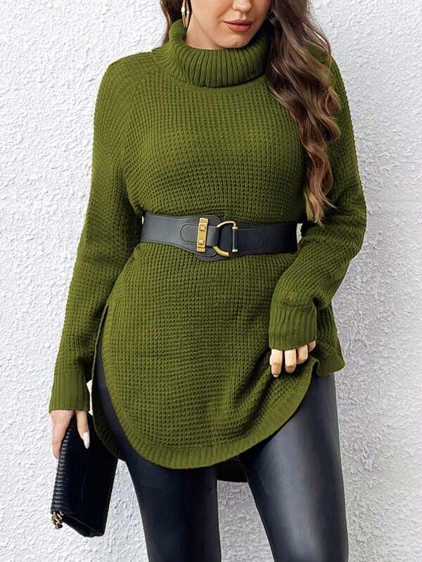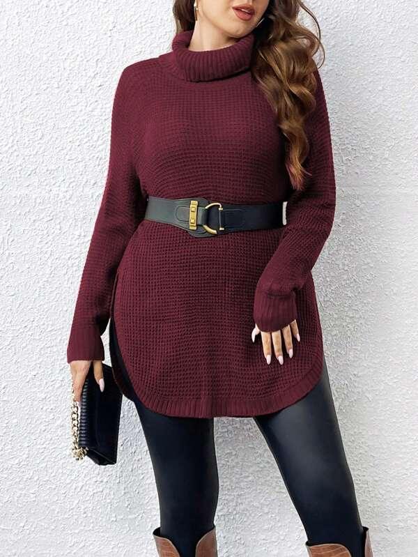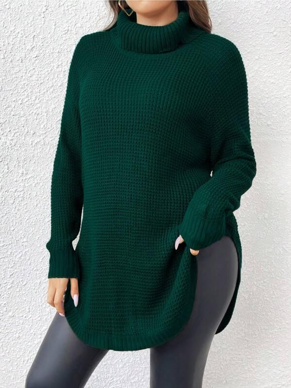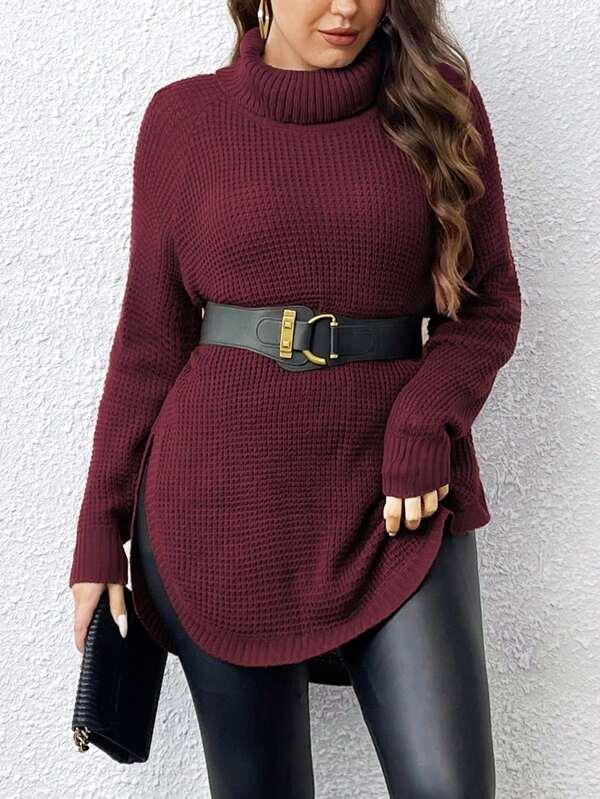 This pullover includes a slit hem design, offering movement and shape while adding visual interest. The longer length delivers extra coverage, making it easy to wear with leggings or slim trousers.