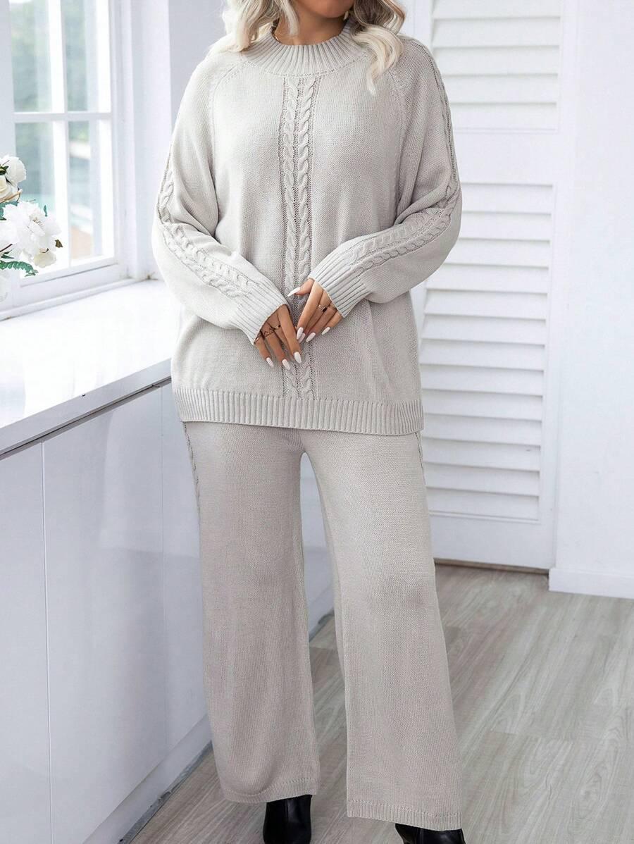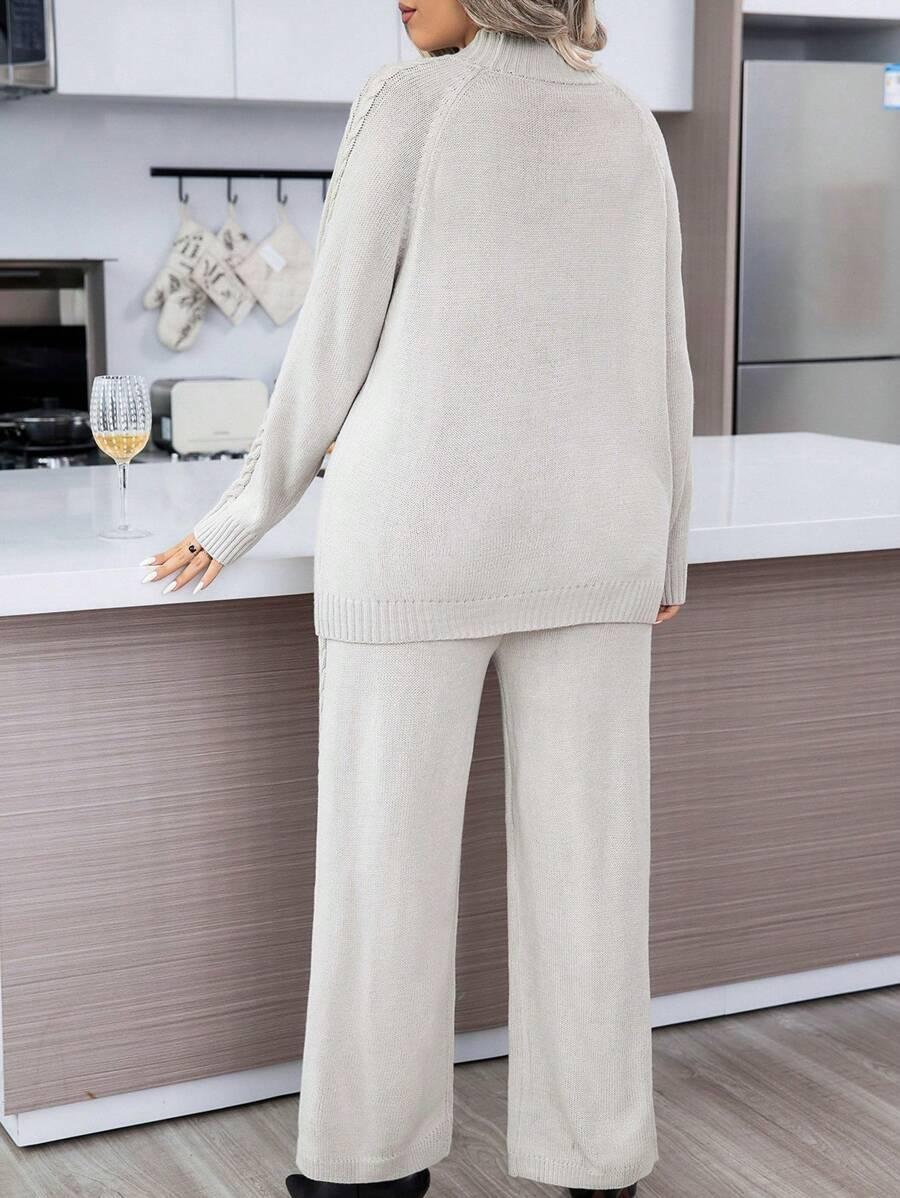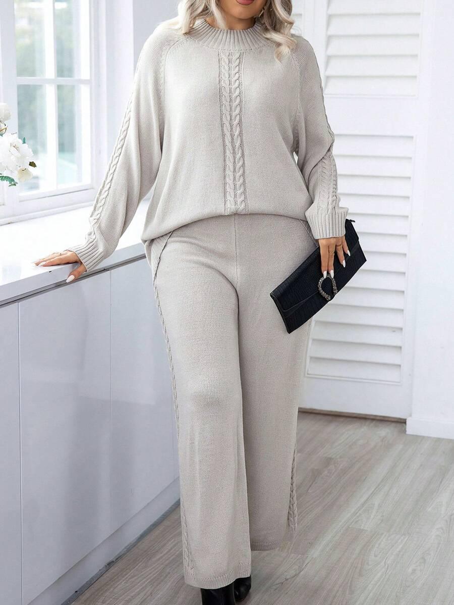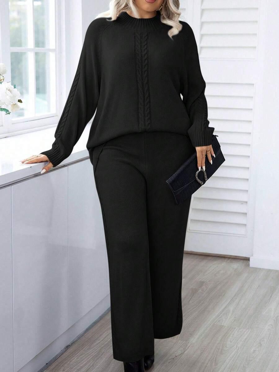 Wrap yourself in warmth with the Plus Cable Knit Raglan Sleeve Sweater And Knit Pants—a matching set designed for cozy style during the coldest days. This thoughtfully crafted ensemble merges casual comfort with timeless cable knit texture for a look that’s equally practical and polished.