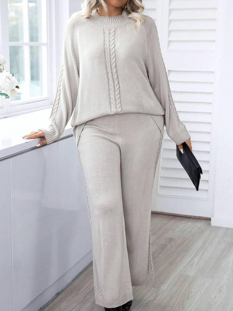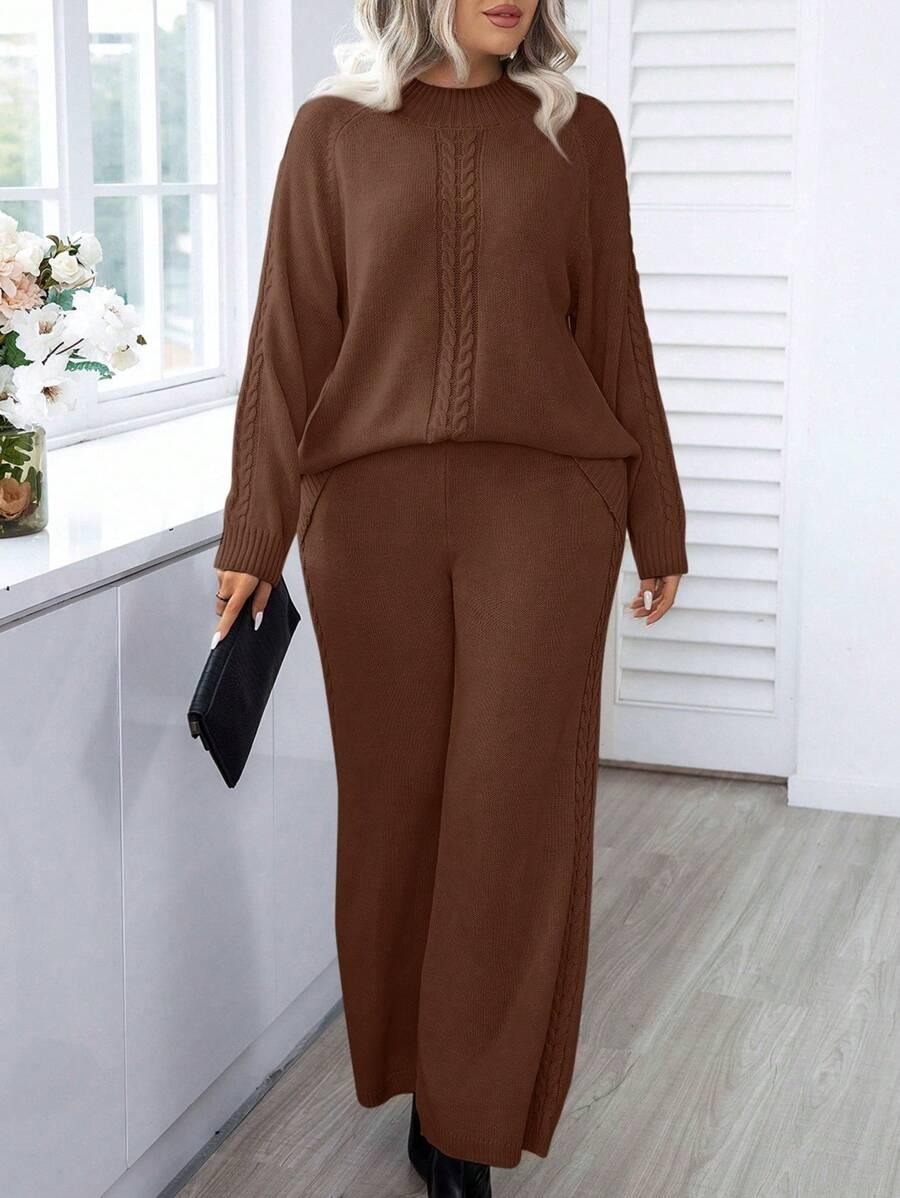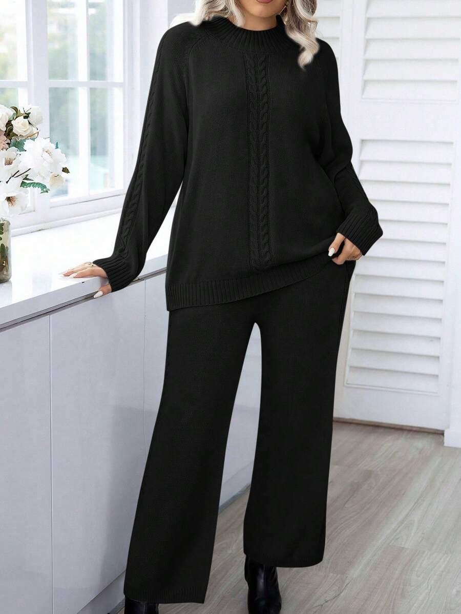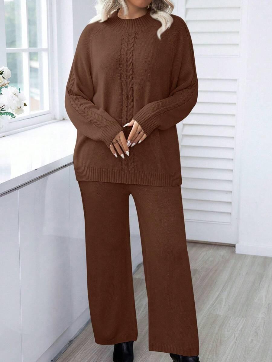 Wrap yourself in warmth with the Plus Cable Knit Raglan Sleeve Sweater And Knit Pants—a matching set designed for cozy style during the coldest days. This thoughtfully crafted ensemble merges casual comfort with timeless cable knit texture for a look that’s equally practical and polished.