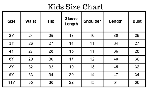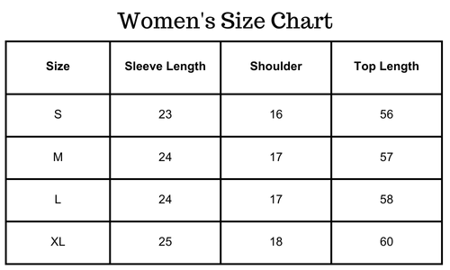 Size chart(inches):