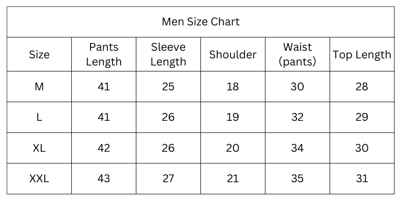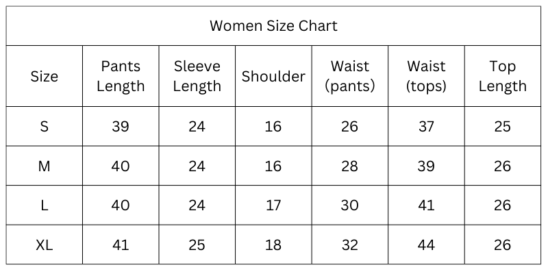 Size Chart (Inches):