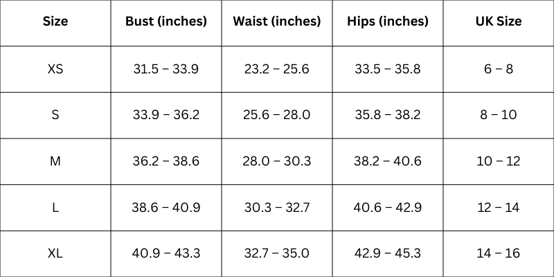 Size Chart (Inches):