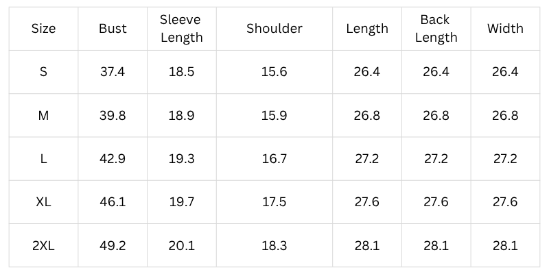 Size Chart (Inches):