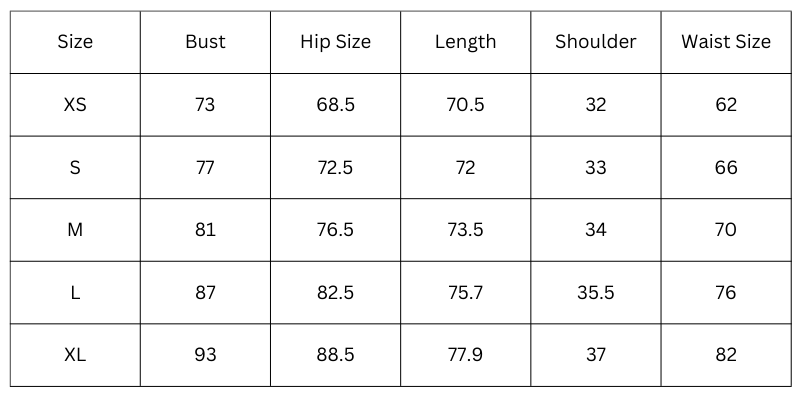 Size Chart(cm):