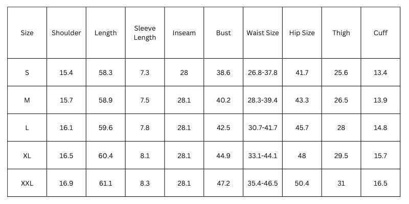 Size Chart (inches):