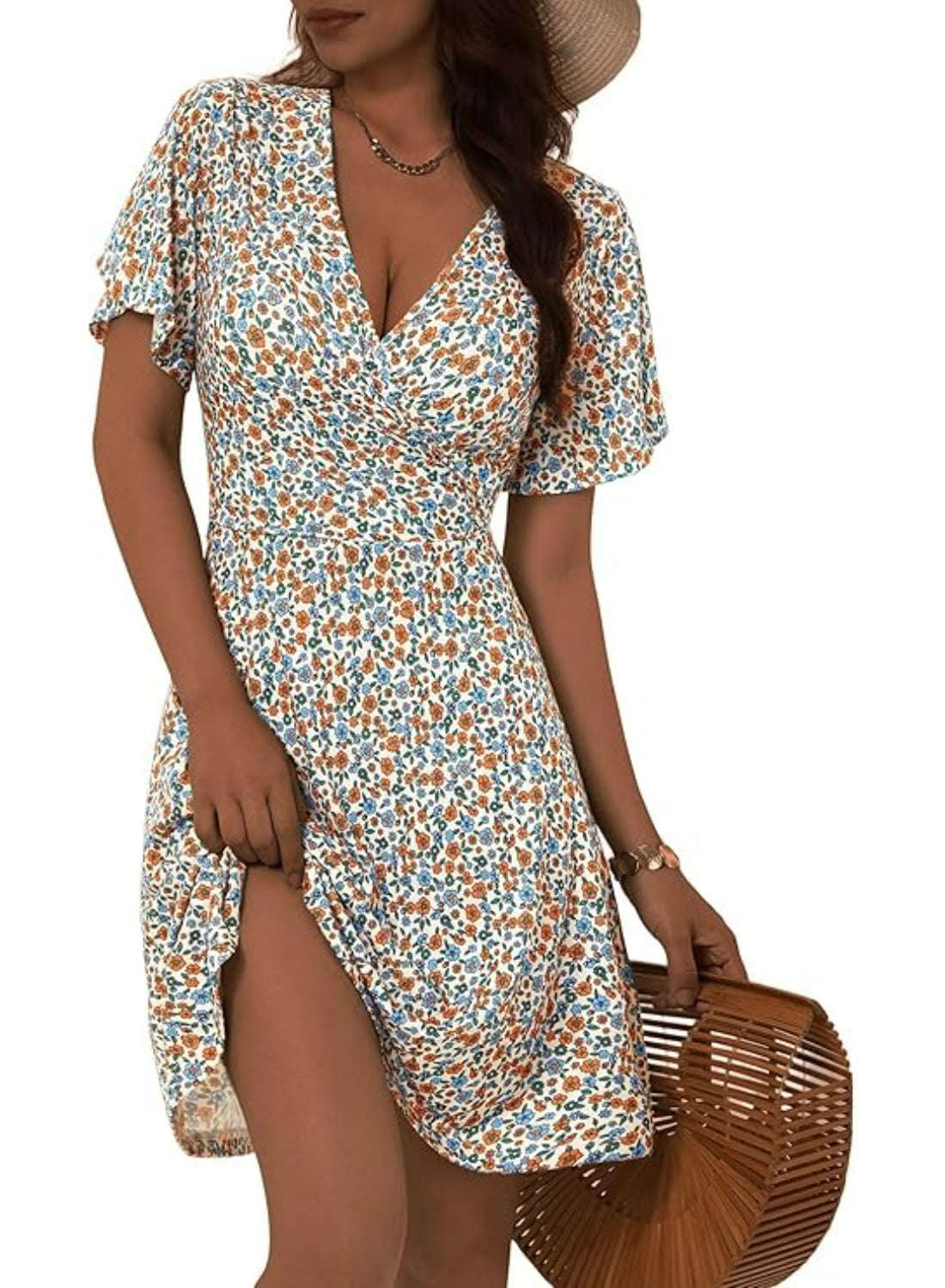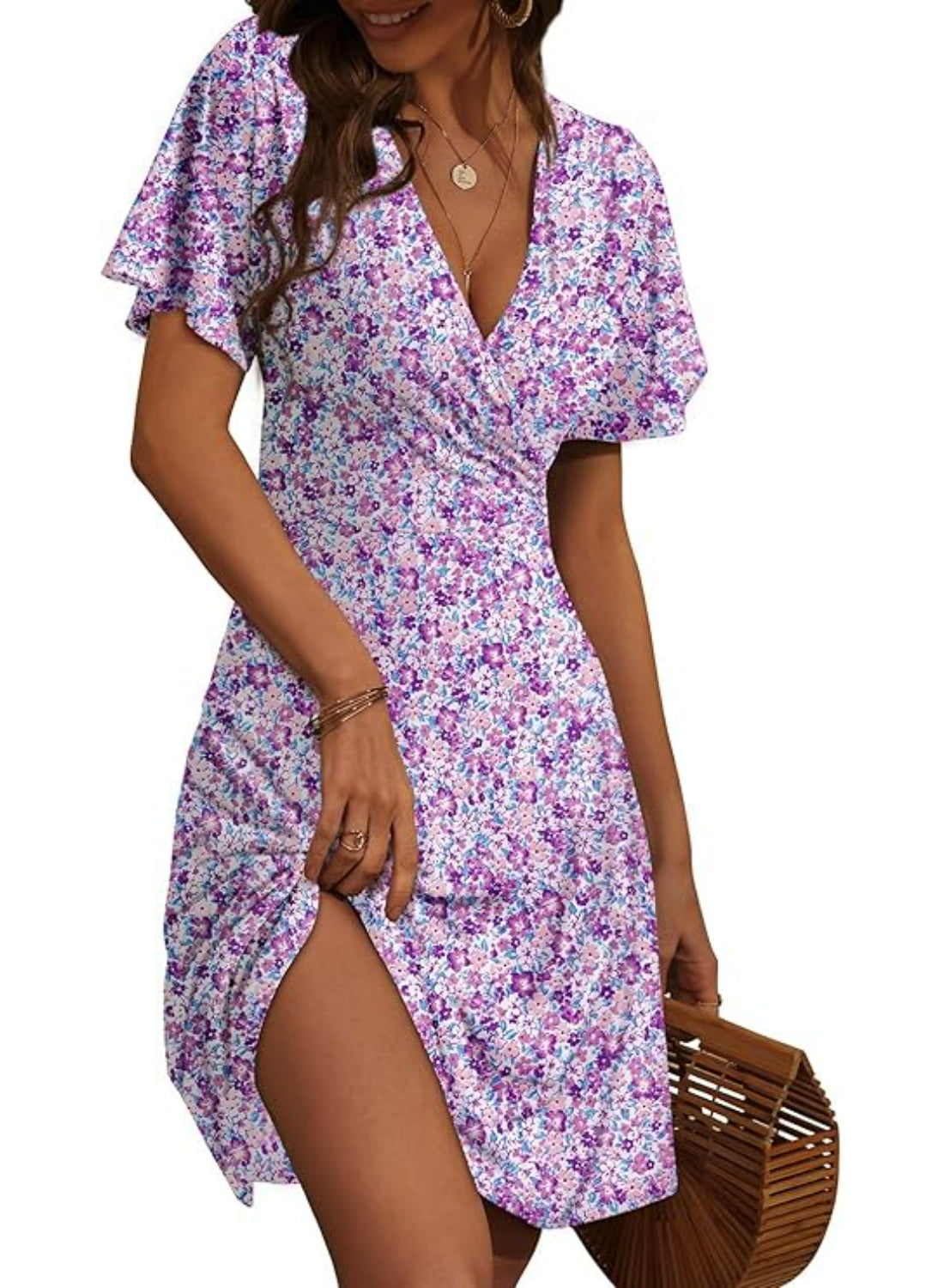 The wrap front midi dress design, combined with ruffle sleeves and soft flowy fabric, creates an appealing look that remains comfortable and practical. Whether you style it for everyday errands or vacation plans, this short sleeve wrap dress brings effortless charm and reliable wear to your wardrobe.