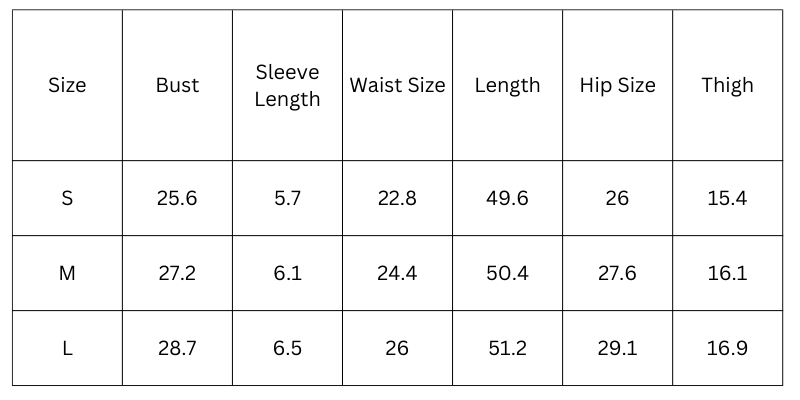 Size Chart (inches):