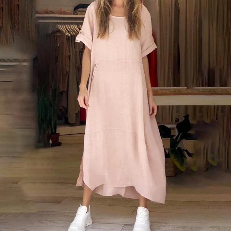 Its silhouette allows room to move without appearing oversized, aligning with a Loose Fit Linen Dress profile
