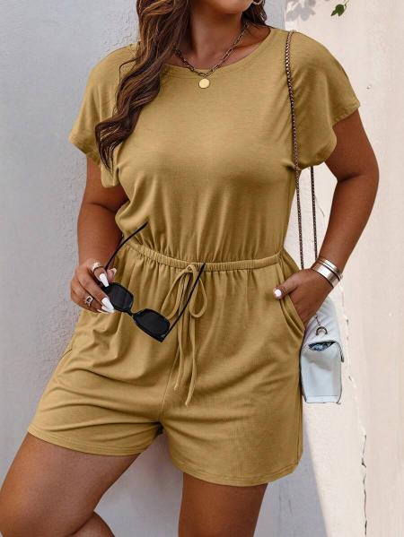 Made from a soft, lightweight fabric, this jumpsuit is perfect for warm weather. The fit offers plenty of movement, while the adjustable drawstring waist allows you to customize the fit for comfort and style. The short sleeve design keeps you cool, making it ideal for sunny days or layering with a jacket when the temperature drops.