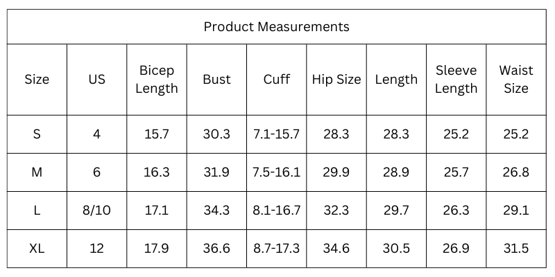 Size Chart (Inches):
