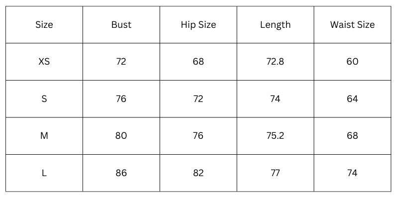 Size Chart(cm):