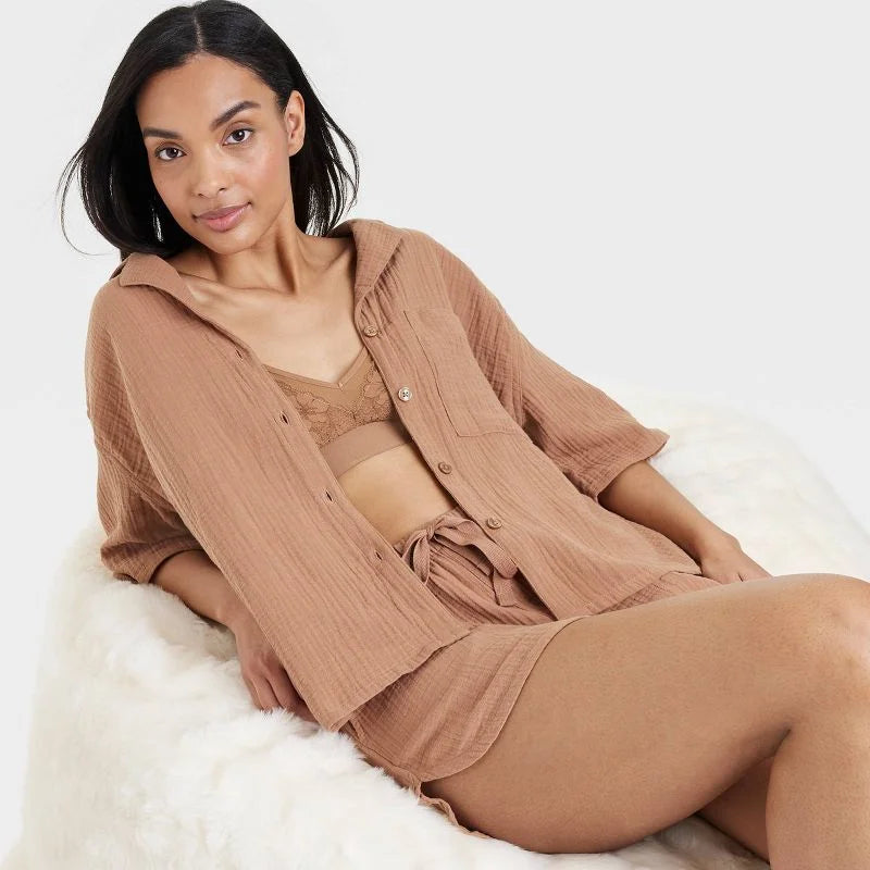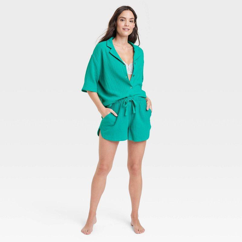 If you're looking for pajamas for your next vacation, try this Soft Linen Blouse Shorts Set. Made from premium fabric that's light and soft against bare skin, the top or shorts are cut for a relaxed fit and have mother-of-pearl buttons, while the shorts are topped with a comfortable elasticated waistband.