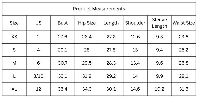 Size Chart (Inches):