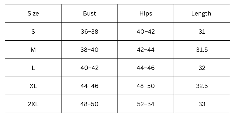 Size Chart(inches):