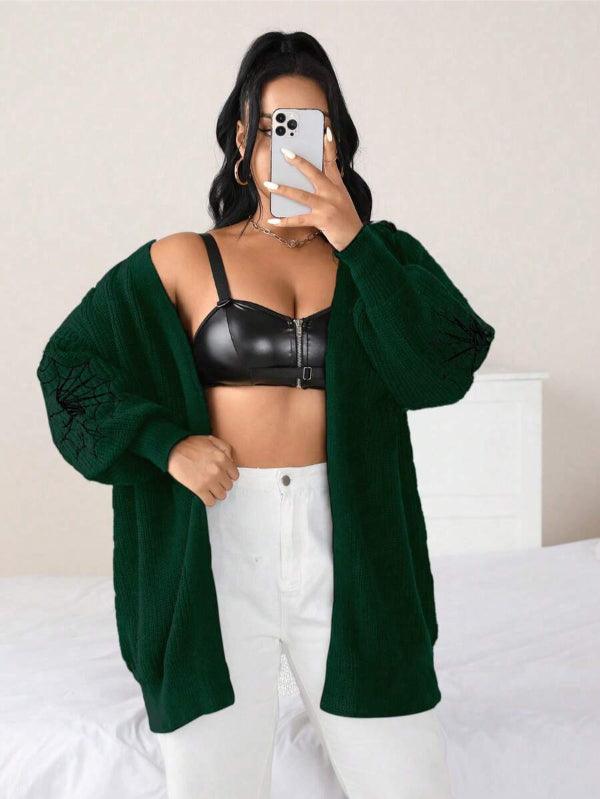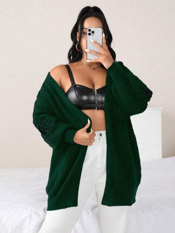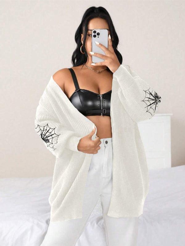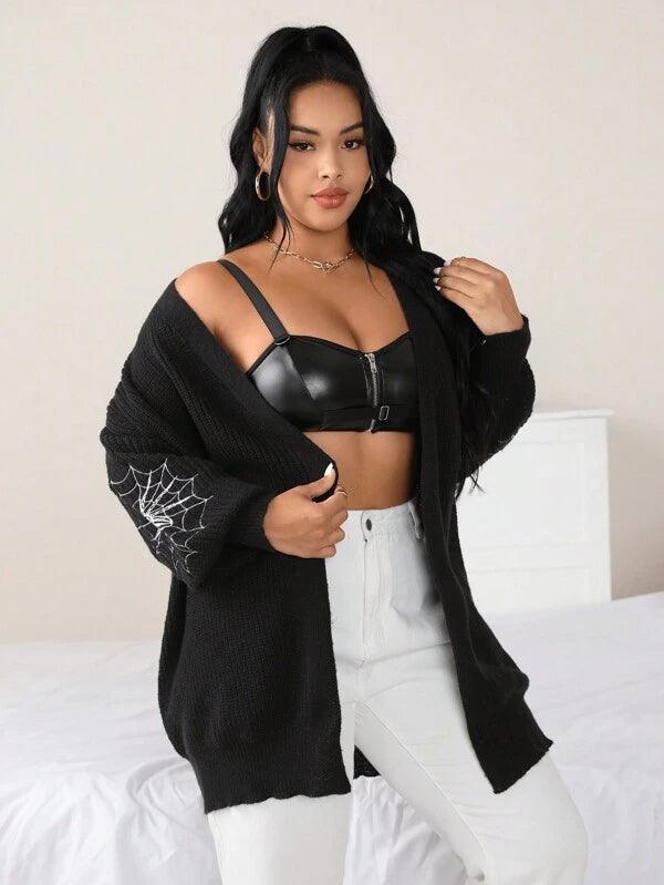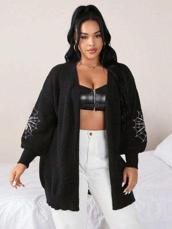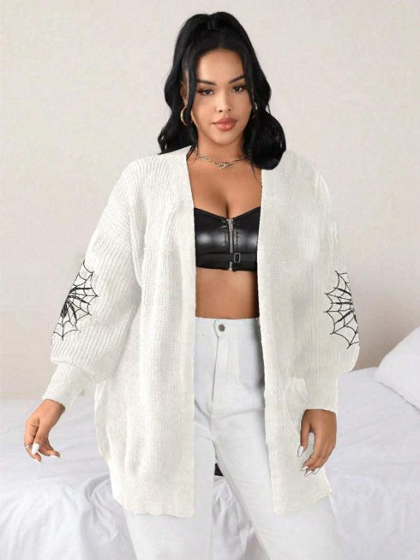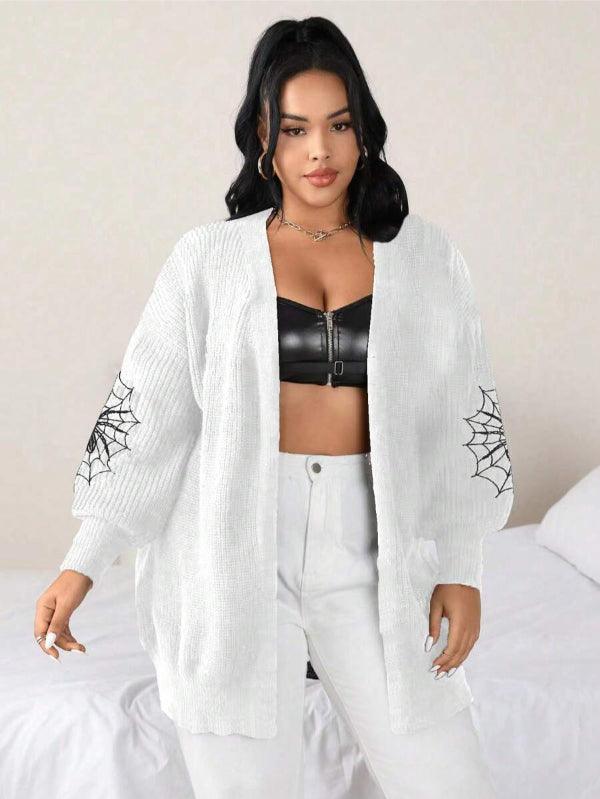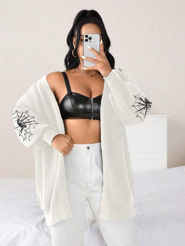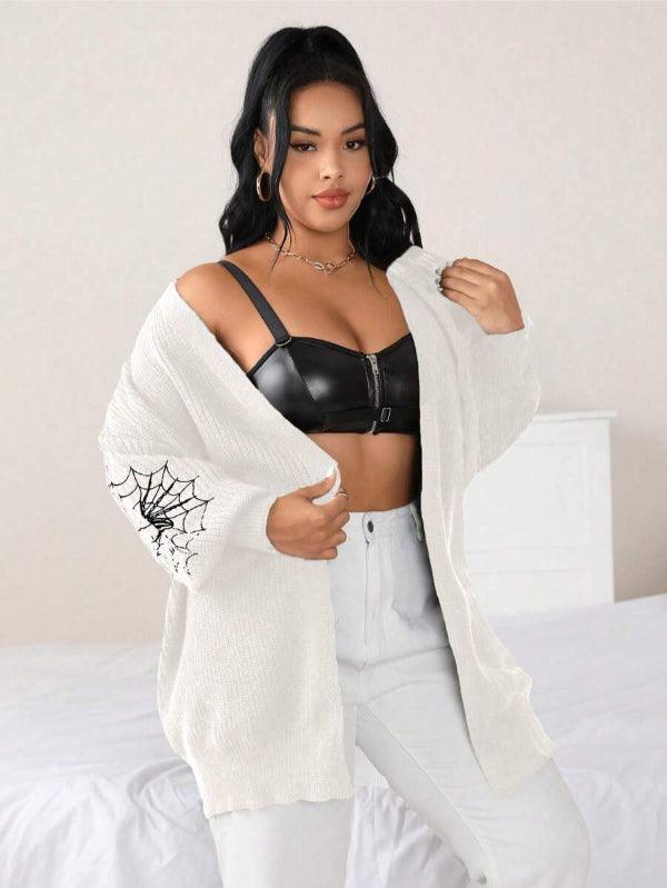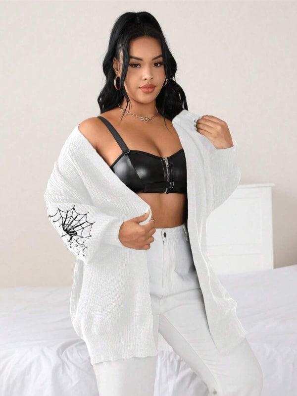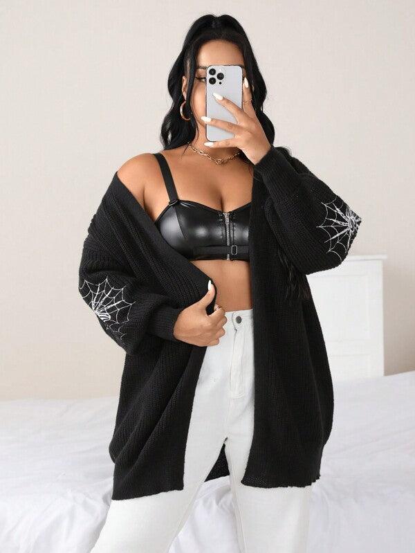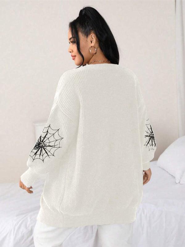 Make your style stand out with the Spider Web Pattern Plus Long Sleeve Sweater. This casual knitwear piece fuses bold design with wearable comfort. Its standout web-graphic sleeves create instant visual impact, while the keeps things effortlessly cozy.
