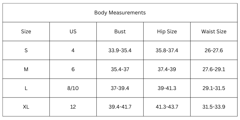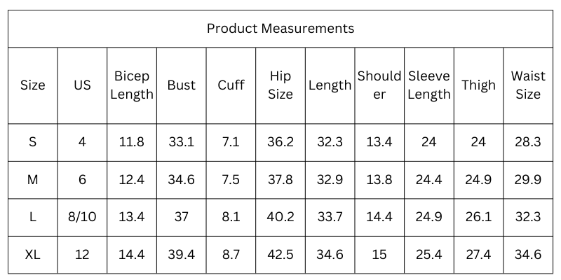 Size Chart (Inches):