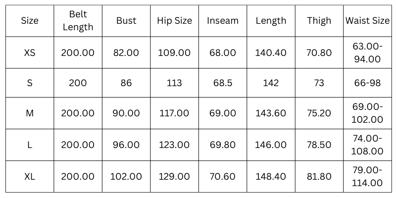 Size Chart(cm):