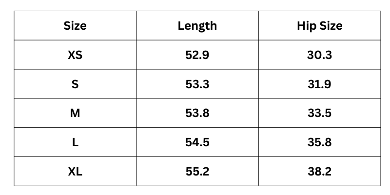 Size Chart(inches):