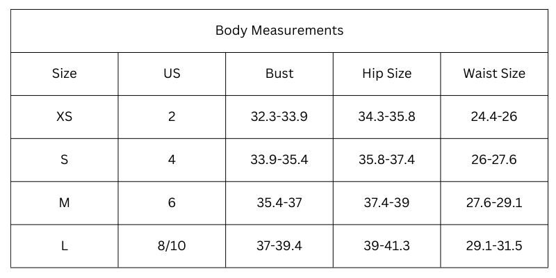 Size Chart (Inches):