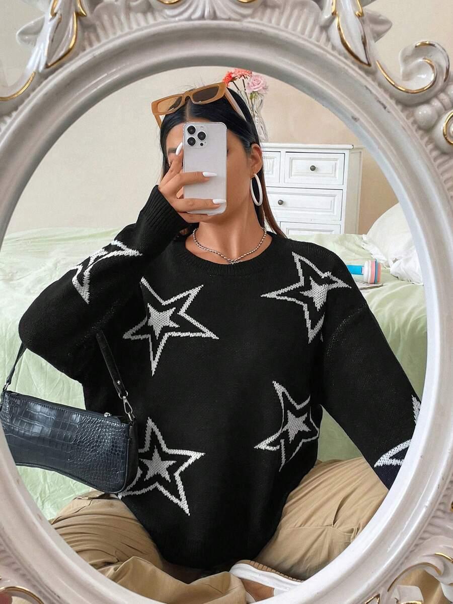 Bring a celestial charm to your everyday wardrobe with the Star Pattern Elegant Sweater. Crafted for those who appreciate a mix of subtle drama and cozy style, this sweater balances elegance with a touch of cosmic allure. Whether you're dressing for casual outings or layering up for transitional weather, this sweater makes a standout statement with its bold star graphics and classic fit. Designed to offer both comfort and versatility, it’s an essential addition for knitwear lovers.