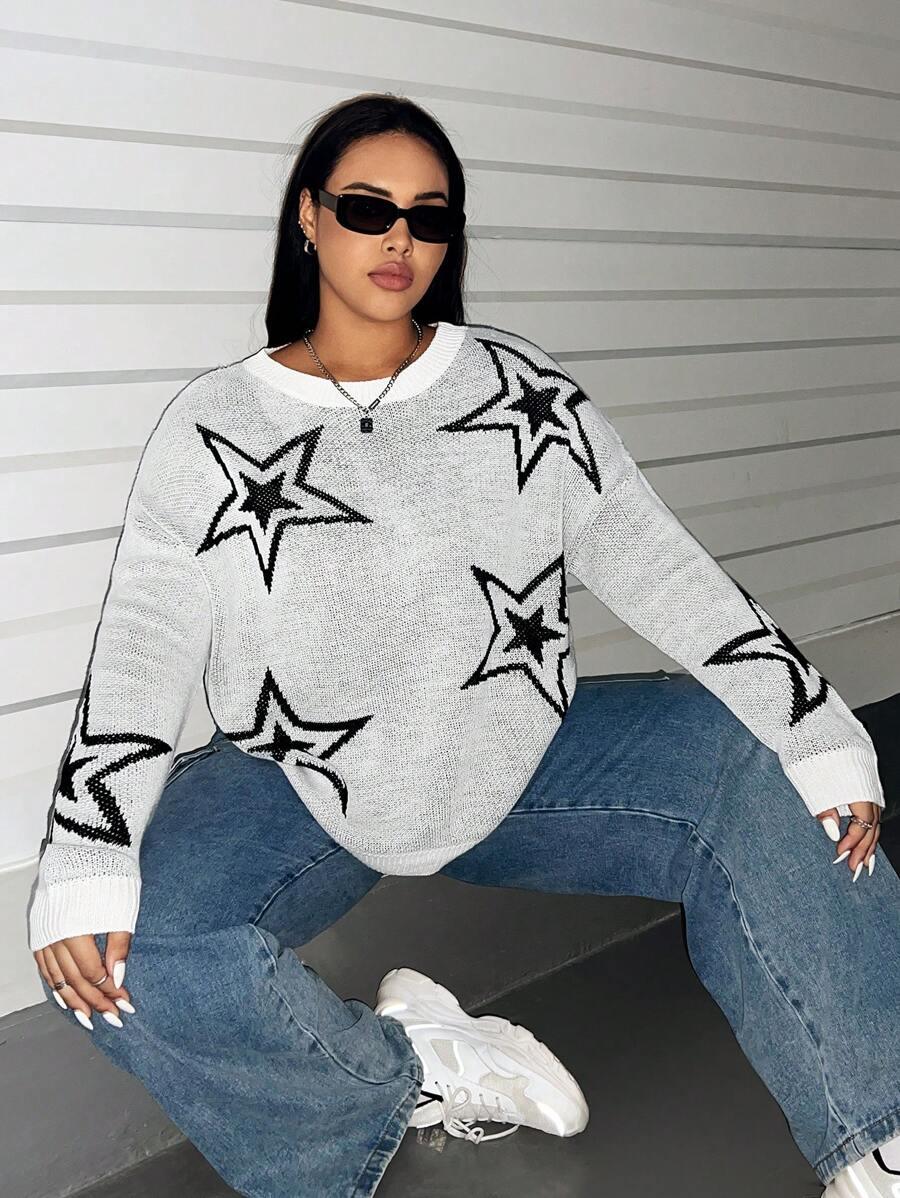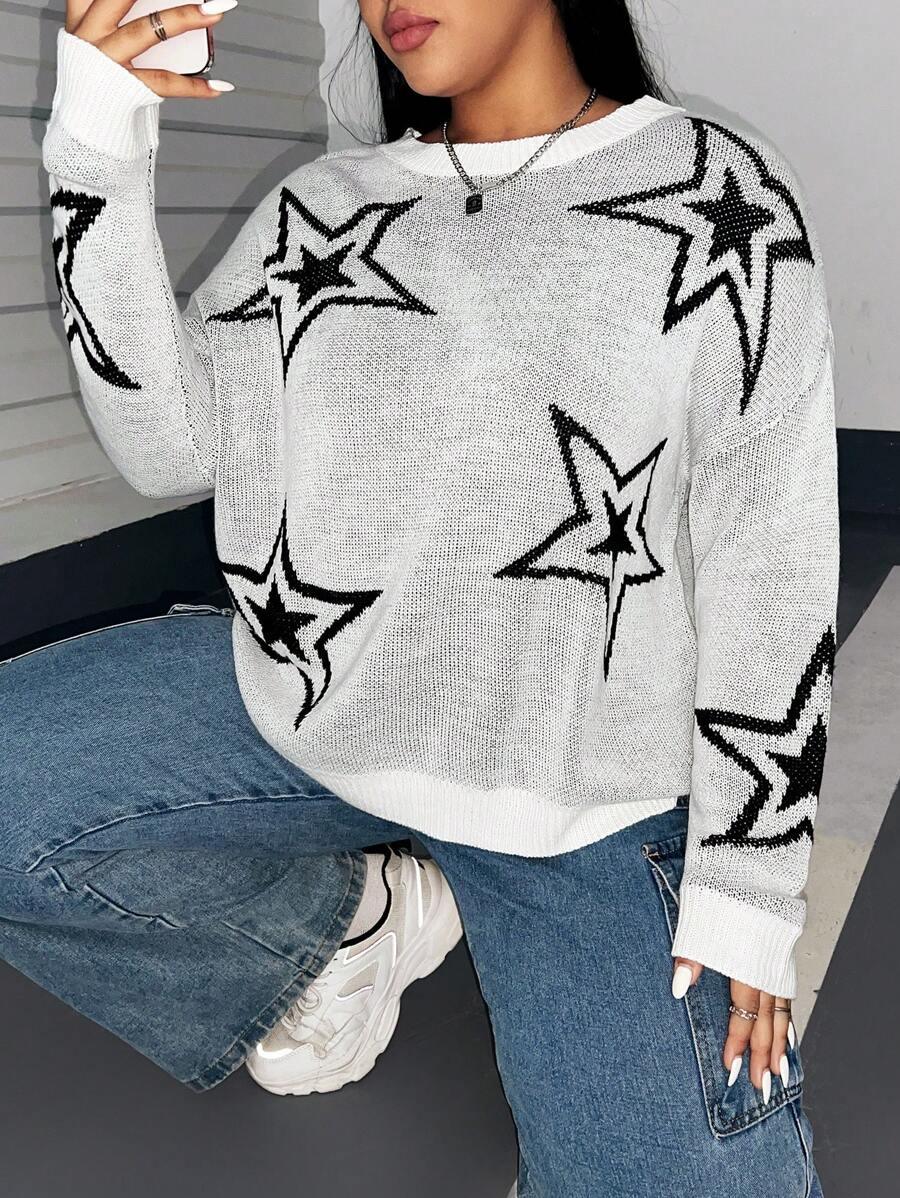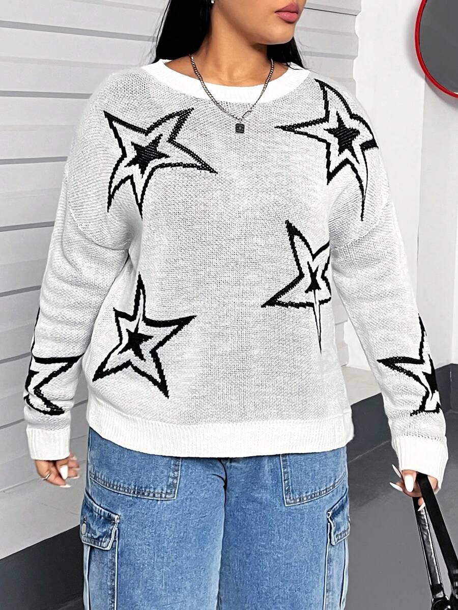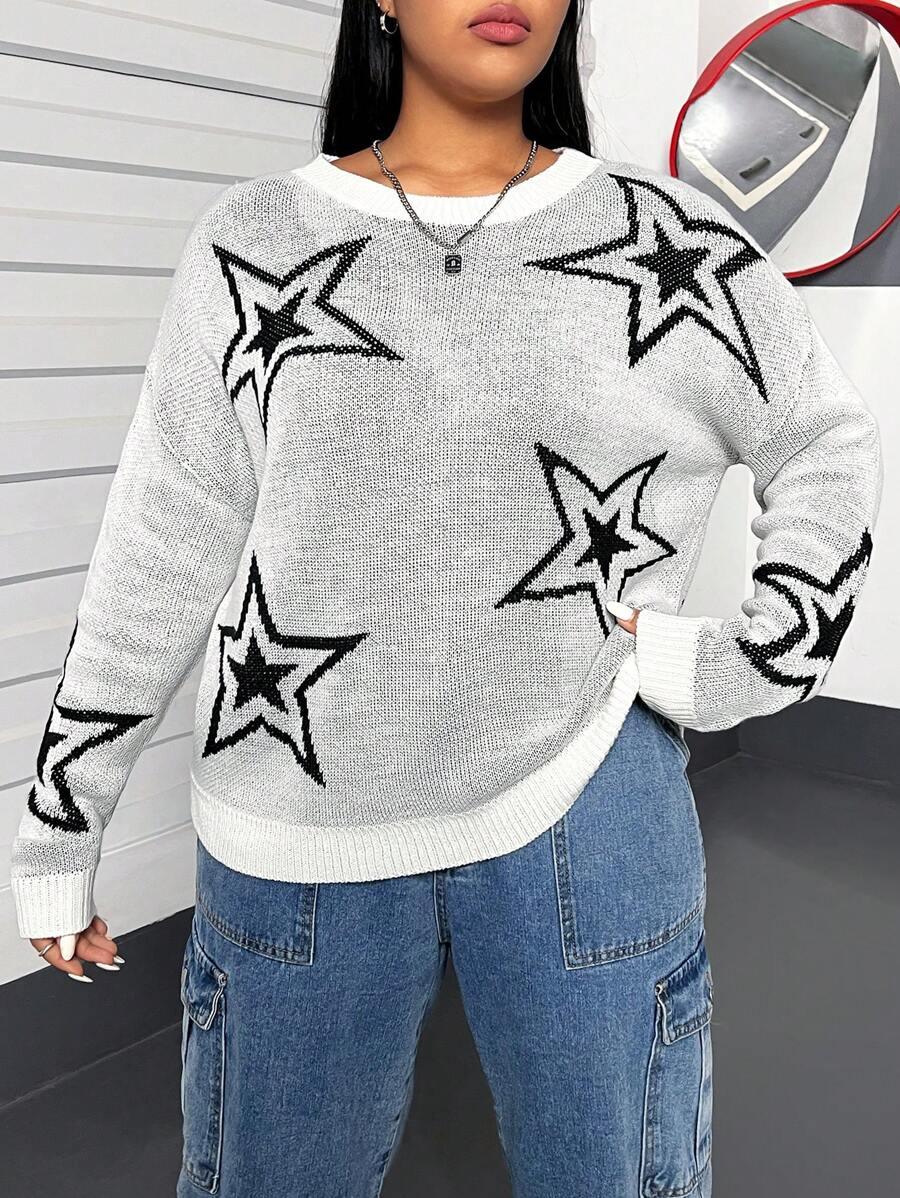 • Effortless Coordination: This white star graphic sweater pairs easily with both neutrals and bold tones, making outfit planning simple.