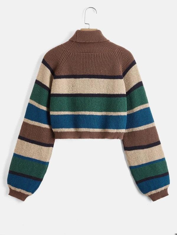 The cropped length, soft knit fabric, and high collar design provide light coverage suitable for cooler temperatures. With long sleeves and slight stretch in the fabric, this sweater supports daily wear with ease of movement. The Sweater is useful for adding character to your outfit while keeping comfort in focus.