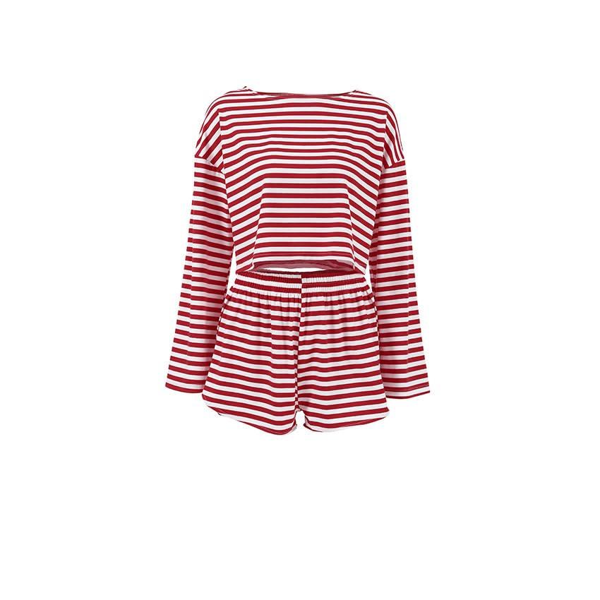 Enjoy comfort and style with this Striped Lounge Set, designed for daily wear or comfort. The set includes a long sleeve top and matching shorts, crafted to provide a fit and ease of movement.comfort. The set includes a long