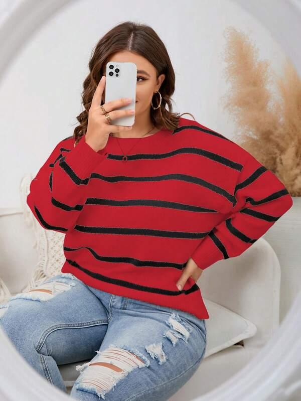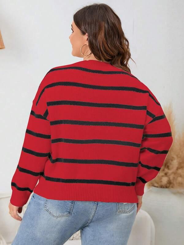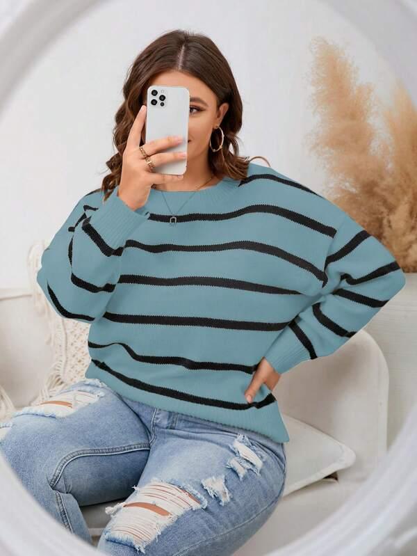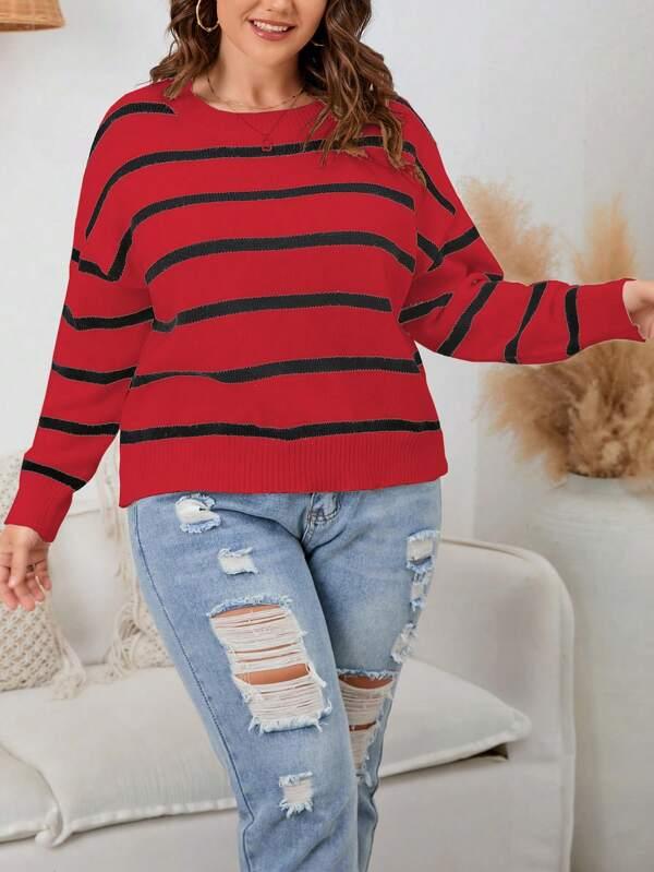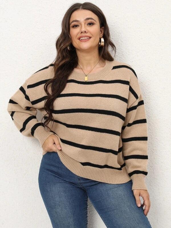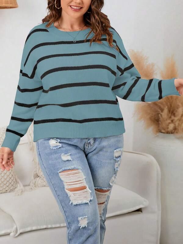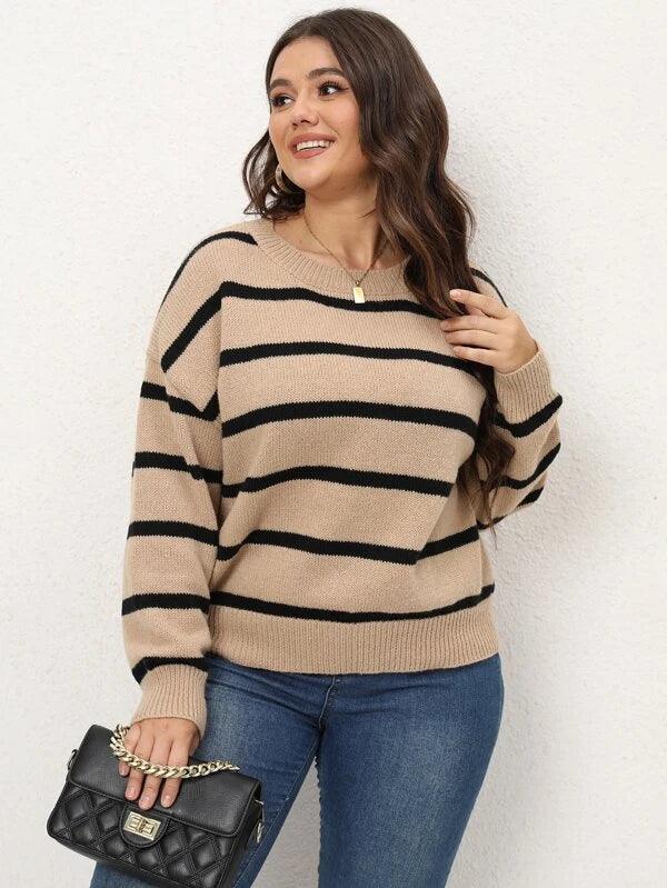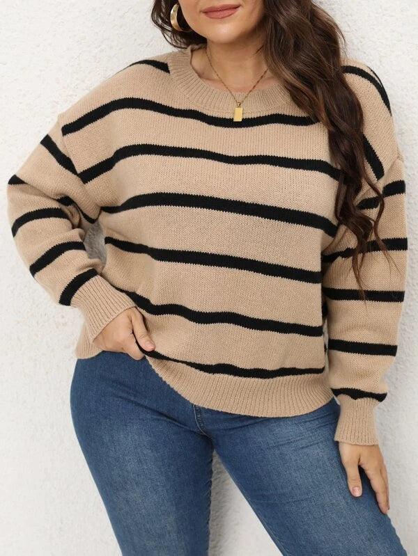 Worn on its own or over a lightweight inner layer, the sweater offers structured coverage without excessive weight. The pattern features medium-width striping, creating dimension across the fabric. From weekend errands to casual office settings, the silhouette fits seamlessly into simple wardrobes.