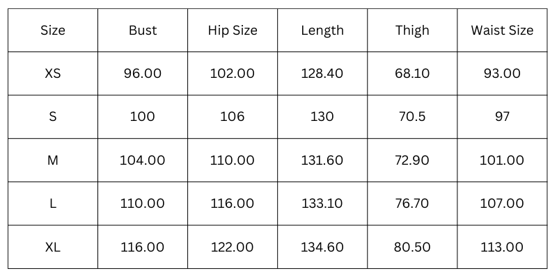 Size Chart(cm):