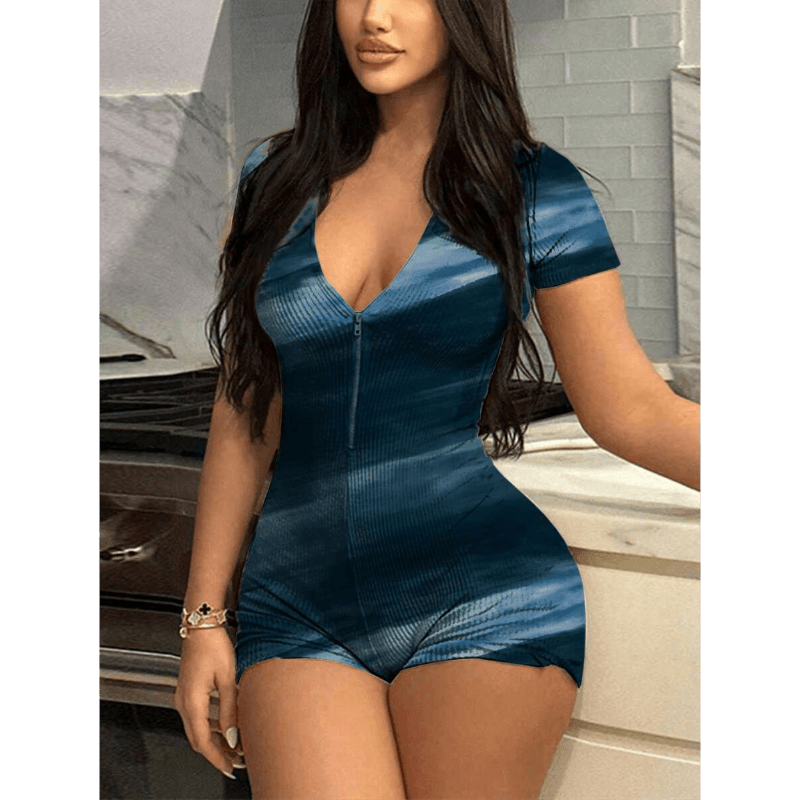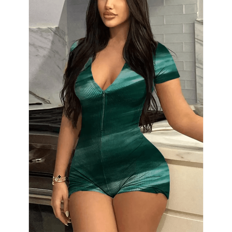 Crafted for all-day wear, the short sleeve design keeps you cool during warmer months, while the body-hugging silhouette flatters your figure. The adjustable zipper adds versatility, making it easy to dress up or down for various occasions. Pair it with sneakers for a casual look or heels to elevate your outfit for a night out. With a minimalist design, this jumpsuit works well with any accessories or outerwear.