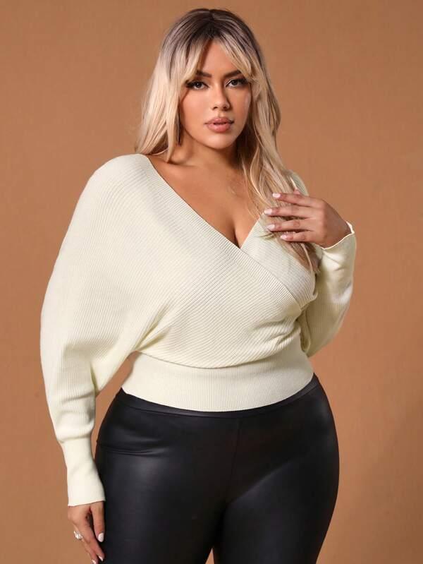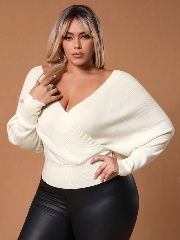 Elevate your wardrobe with the Surplice Batwing Sleeve Wrap Sweater—where comfort meets refined design. This sweater brings modern elegance through its off-shoulder surplice neckline and fluid batwing sleeves. Whether you dress it up or wear it casually, it offers effortless style with cozy softness. The wrap silhouette contours your shape with gentle draping, providing a flattering yet for transitional seasons.