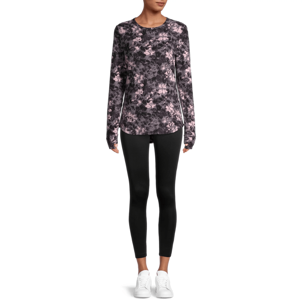 The flexible polyester and spandex blend adapts to both active days and slow-paced indoor settings. With its modern cut, crew neckline, and thumbhole cuffs, this pullover works well in layered outfits or as a standalone piece. A slightly longer hem at the back adds visual balance and comfort.