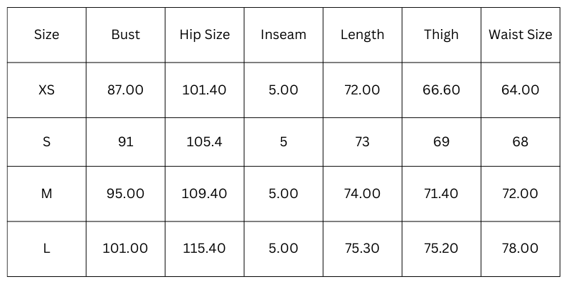 Size Chart(cm):