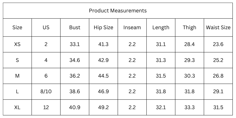 Size Chart (Inches):