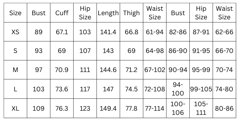Size Chart (cm):