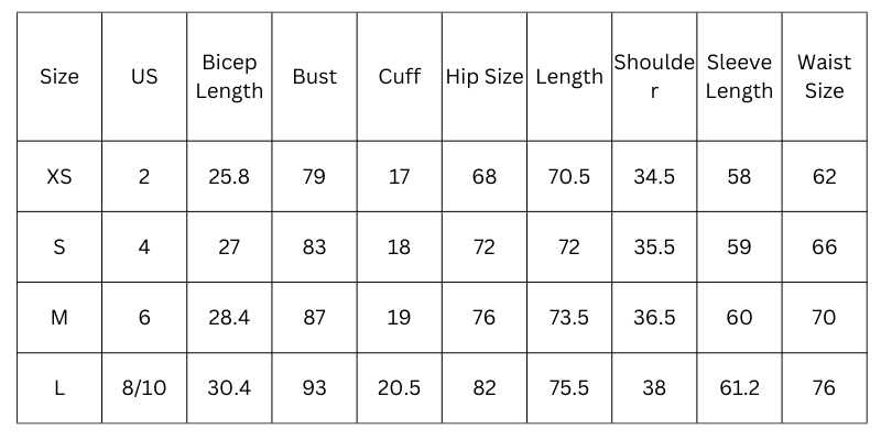 Size Chart (cm):