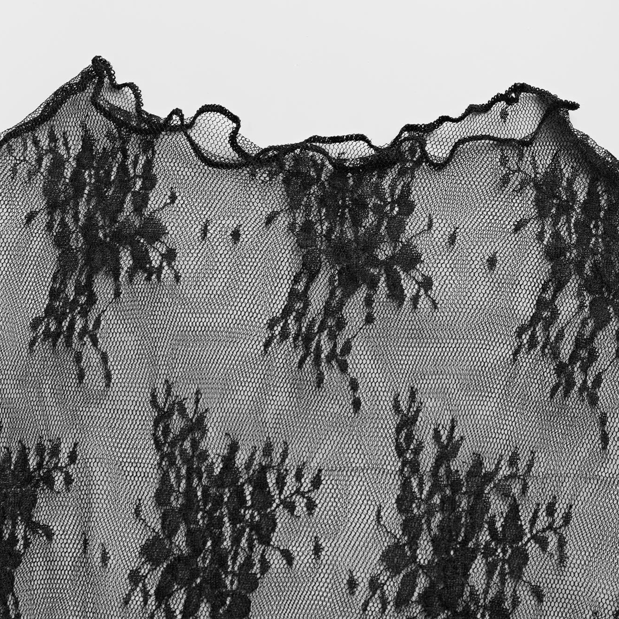 The lace tee is crafted from lightweight knitted fabric and features a regular length design. The lace detailing adds subtle texture without overpowering the overall look. Its long-sleeve structure makes it suitable for layering or wearing on its own, depending on styling preferences.