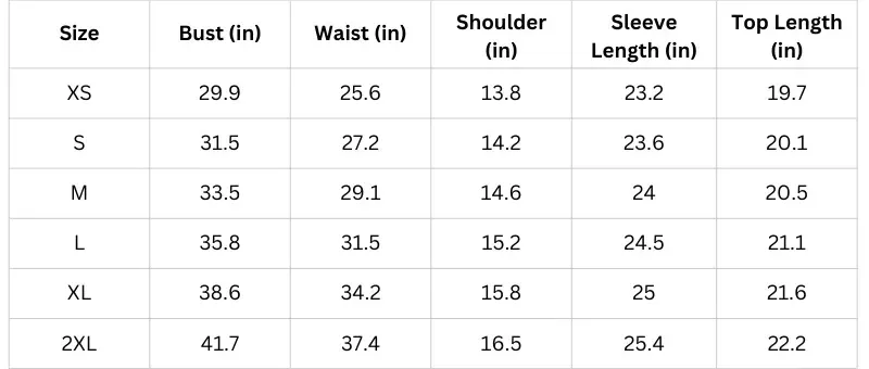Size Charts(inches):