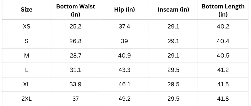 SIZE CHART - BOTTOM