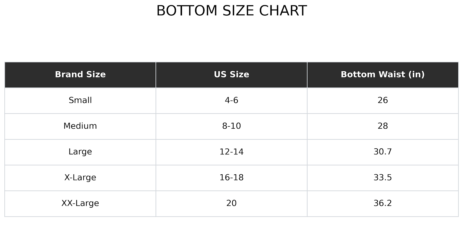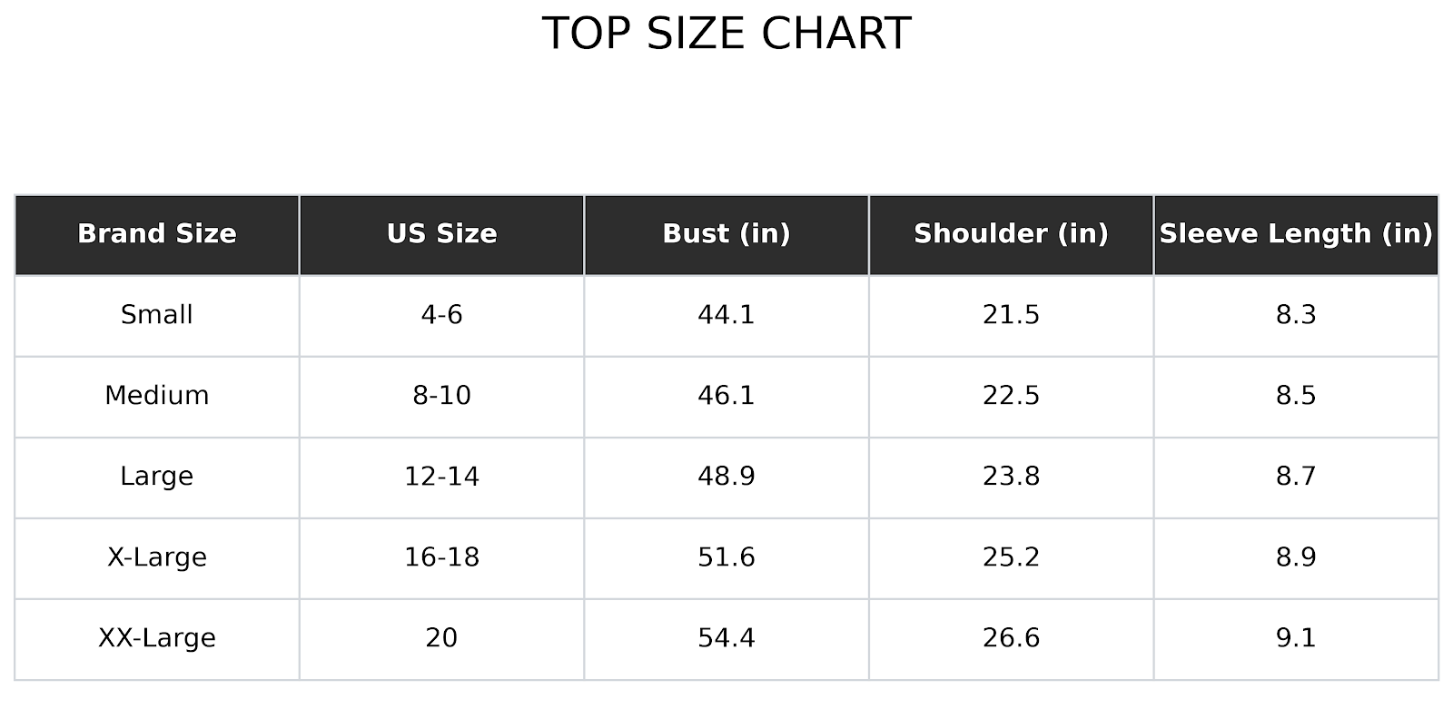 Size Charts(inches):