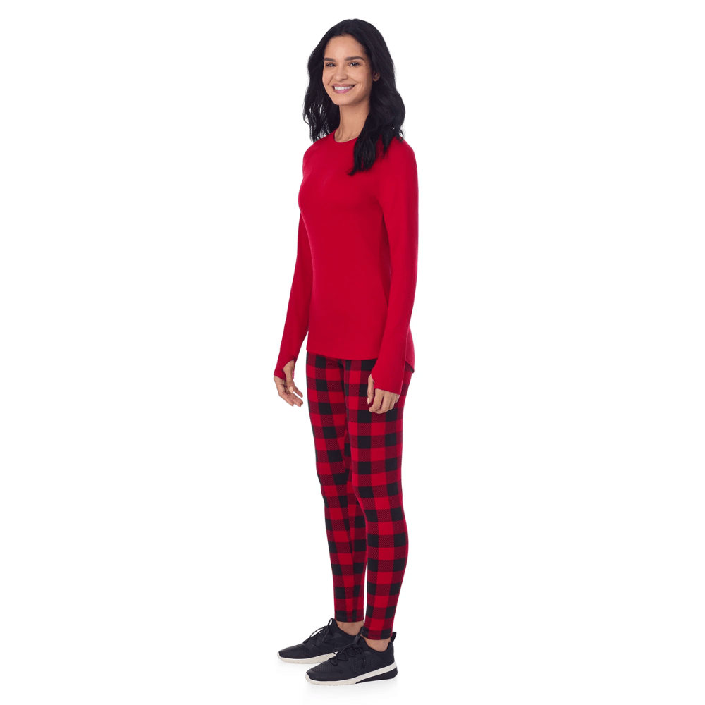 The crew-neck top in this thermal set balances mobility with coverage. Featuring raglan sleeves for easier range of motion, the cut eliminates shoulder seams that might hinder movement. The high-low hemline helps the top fall naturally over the hips without bunching, especially when layered under outerwear. Long sleeves with thumbholes keep the sleeves in place while providing additional coverage over the wrists.