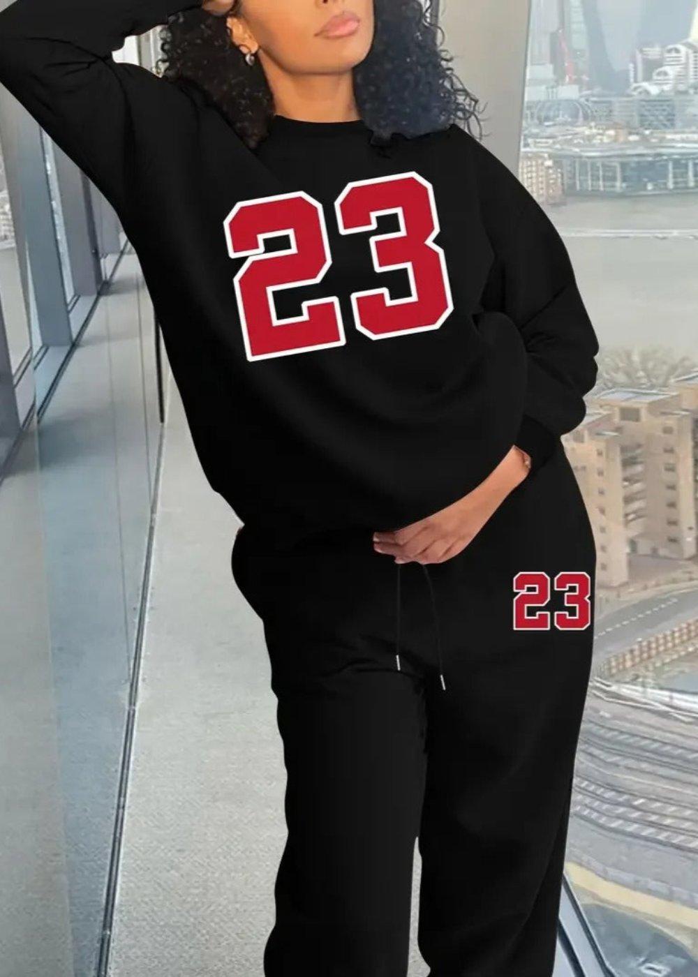 Introducing our exclusive Two Piece Top And Jogger Pants Set, ideal for the stylish and sophisticated individual. This set features a unique design with a bold 23-number pattern, adding a touch of elegance to your wardrobe. Made with high-quality materials, the set offers both comfort and style, making it a must-have luxury item. Upgrade your wardrobe today with our Two Piece 23 Number Top and Jogger Pants Set.