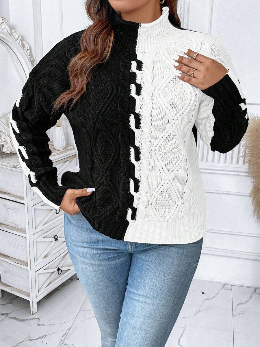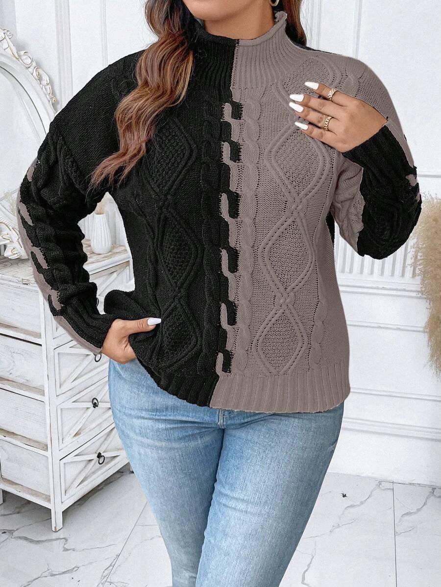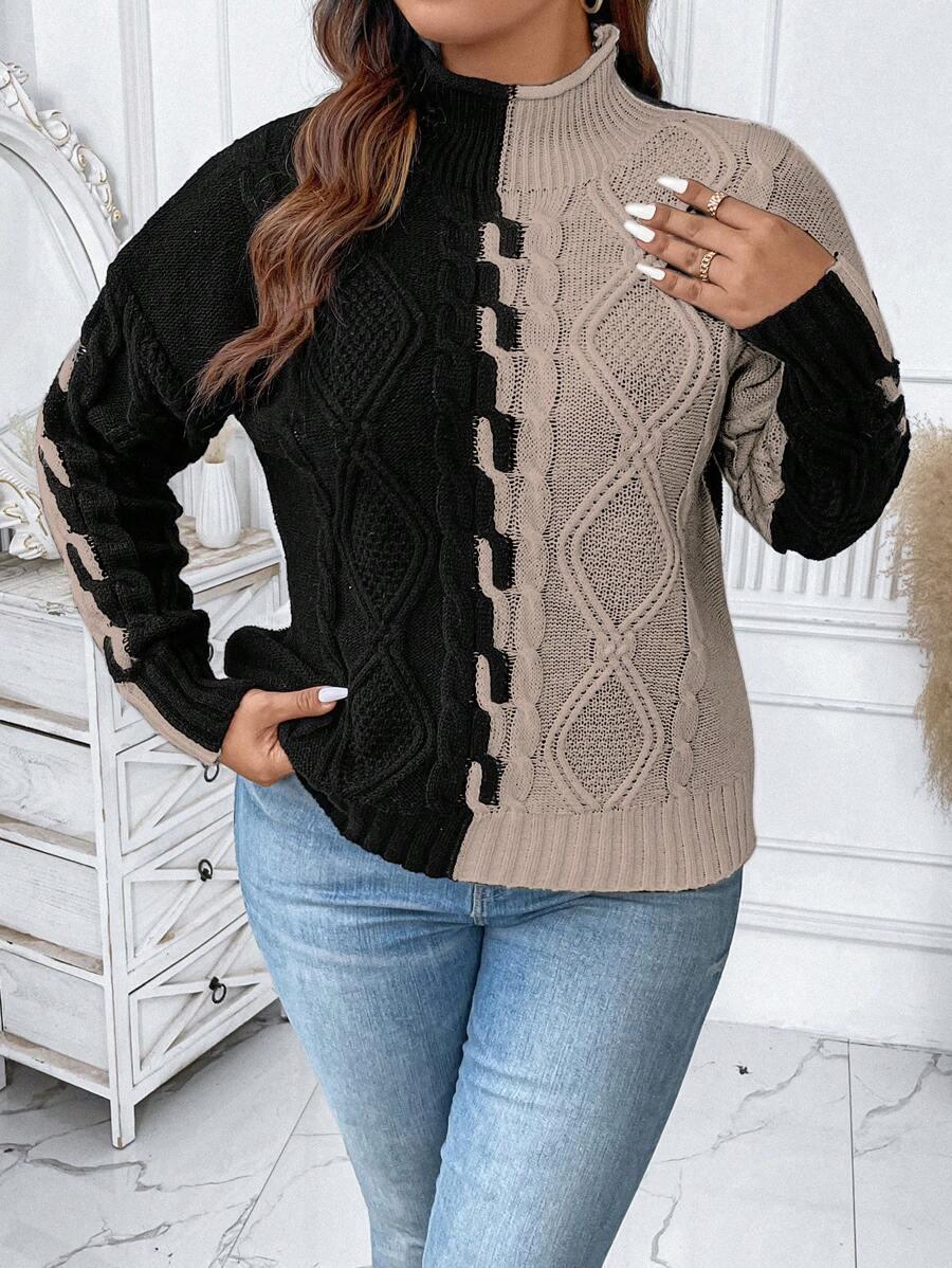 Plus Two Tone Cable Knit Sweater
