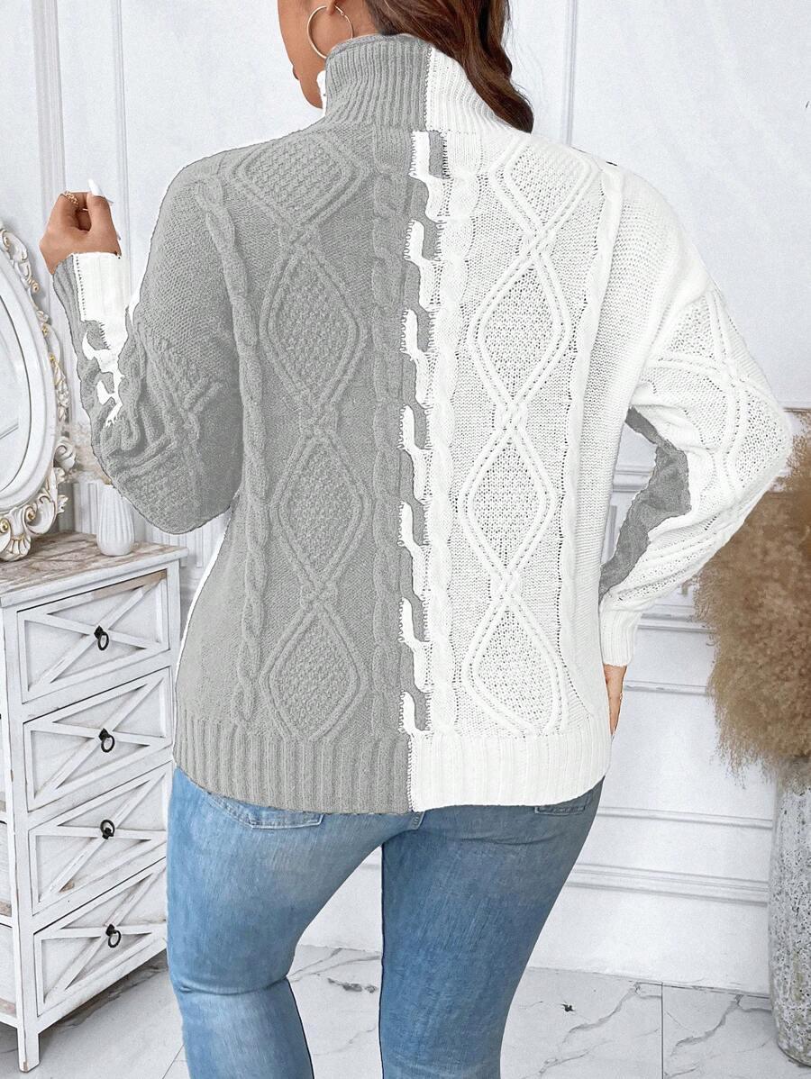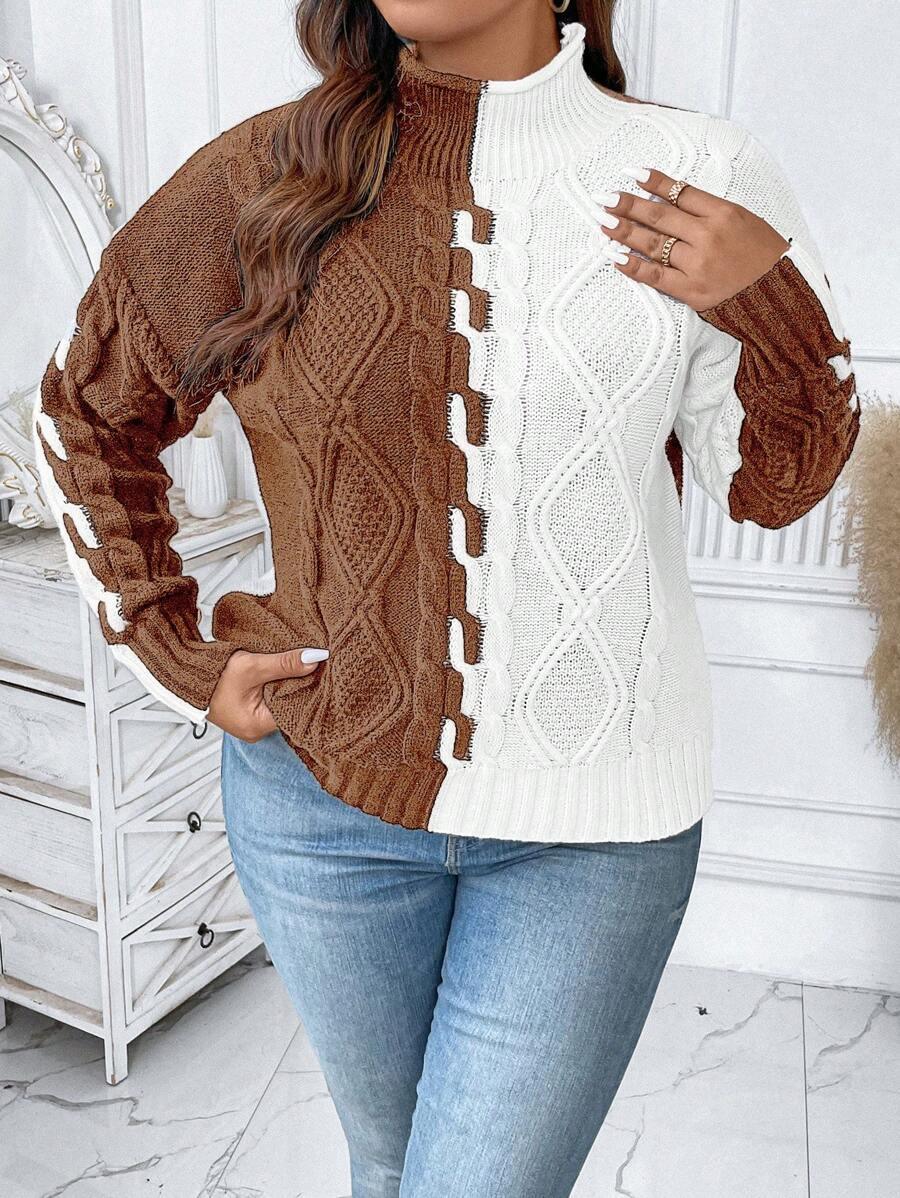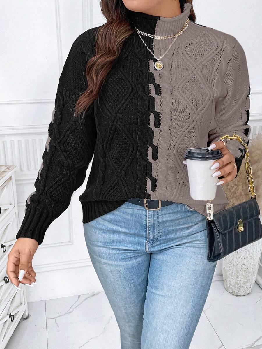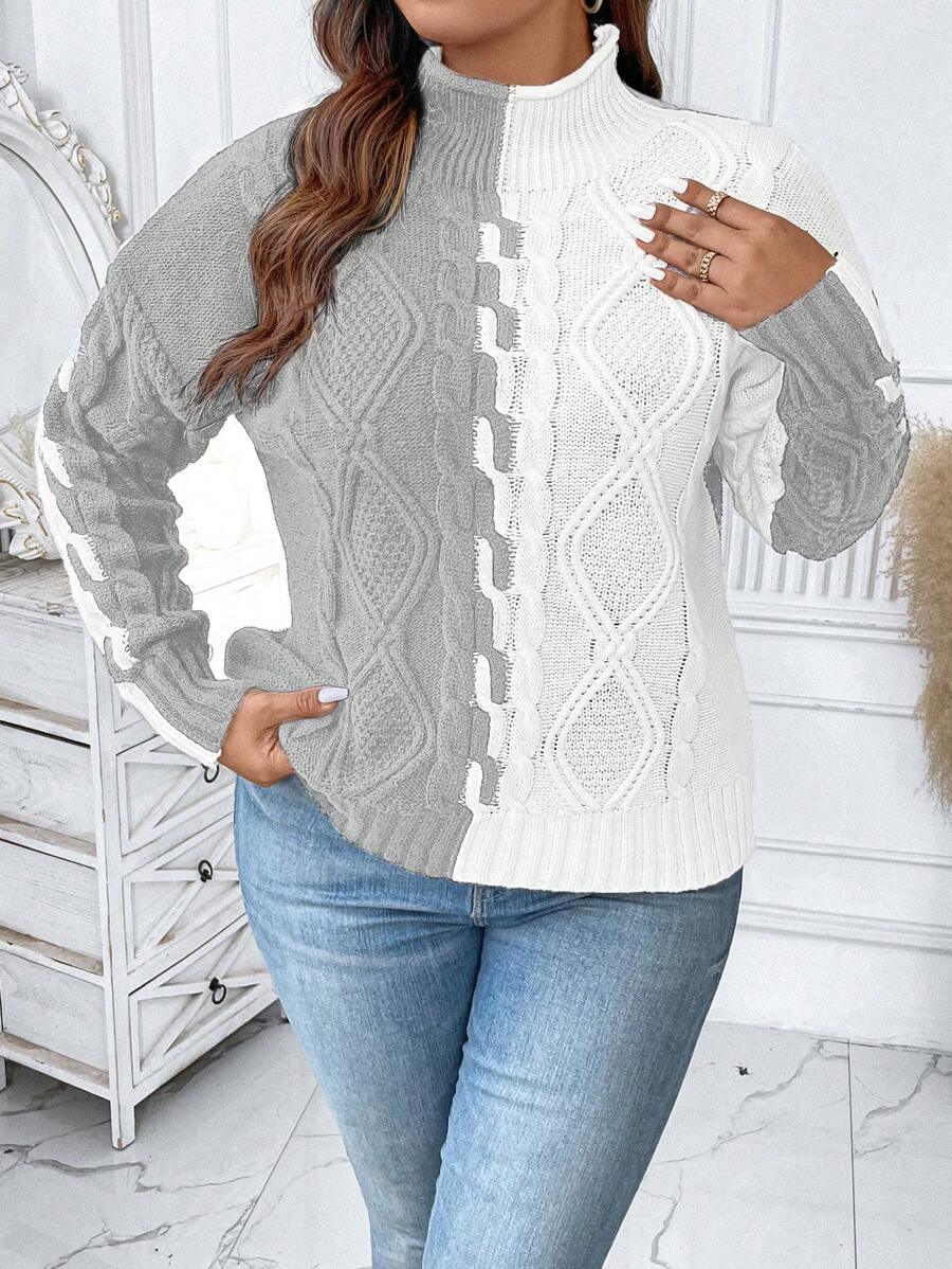 Plus Two Tone Cable Knit Sweater