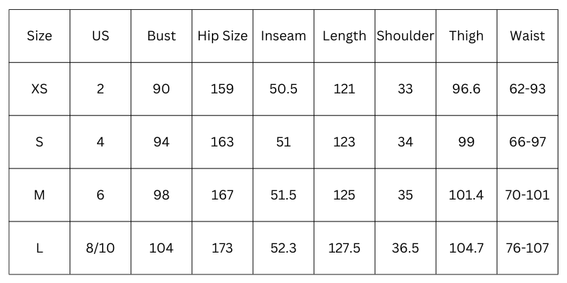 Size Chart(cm):