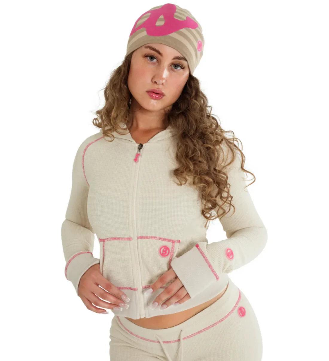 The waffle knit pattern set blends texture and comfort. This two piece knitwear set includes a soft top and matching bottoms. Made from waffle textured fabric this set supports casual movement. The material stretches gently and returns to shape. This waffle knit pattern set includes long sleeves and ribbed cuffs. The pants offer a flexible waistband and ribbed ankles. The ribbed knit ensemble adjusts well to different movements. The soft knit set offers a calm yet structured look. Wear this knit pattern set for daily activities or light outdoor use. It is shaped for simplicity and designed for comfort. From indoor time to errands this stretch fabric loungewear helps you feel ready.